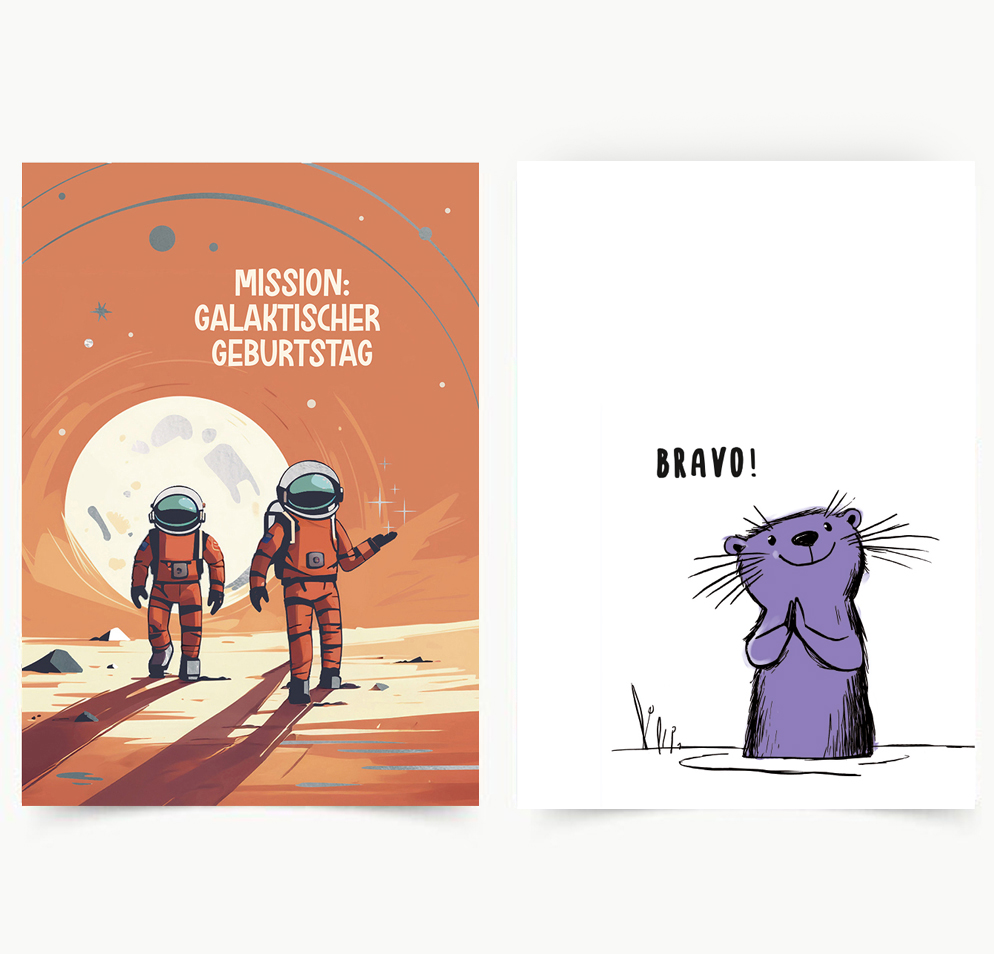 Ich behalte immer die Verkaufszahlen im Auge und stelle hier regelmäßig eine individuelle Karten-Auswahl zusammen, die aktuell besonders gut gehen. Zudem gibt es regelmäßige Neuheiten der bestehenden Serien oder gar eine ganz neue. Hier erfahren Sie es als Erste*r.